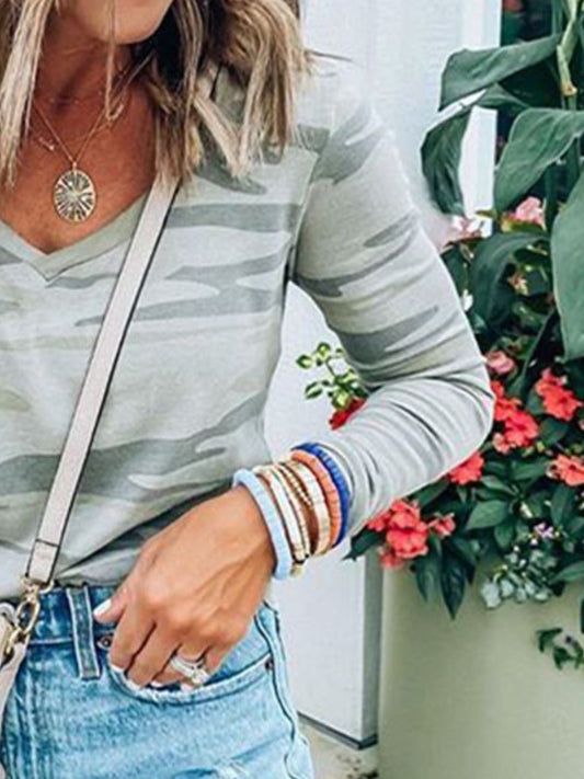 Camouflage V-Neck Long Sleeve T-Shirt