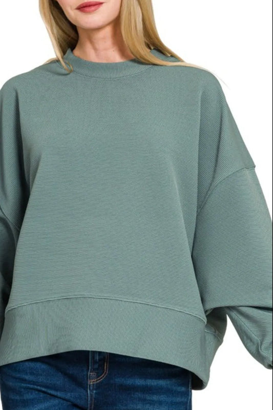 Zenana Ribbed Balloon Sleeve Sweatshirt